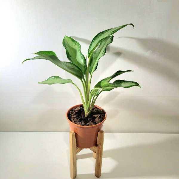 Mantené el sustrato ligeramente húmedo pero nunca encharcado; regar cuando la capa superior esté parcialmente seca. En invierno espaciá riegos. Evitá cambios bruscos: Aglaonema agradece constancia y no le sientan bien los encharcamientos.
