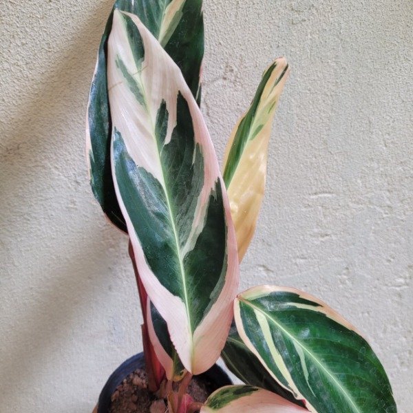 Una planta tropical muy apreciada por su follaje decorativo y sus patrones únicos. Las Maranta ctenanthe forman parte del grupo conocido como plantas de oración, llamadas así porque sus hojas tienden a moverse y plegarse levemente durante la noche. Sus hojas combinan distintos tonos de verde, plateado y a veces púrpura en el envés, aportando textura, movimiento y elegancia a cualquier espacio interior.