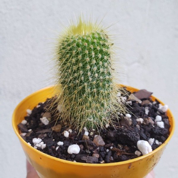 Un cactus icónico y muy llamativo: su cuerpo cilíndrico con espinas finas de color amarillo dorado le da ese aspecto balón de oro o torre amarilla que ilumina cualquier colección de suculentas y cactus 🌟. En cultivo crece desde forma globular en jóvenes hasta columna erguida y elegante con la edad, llegando a medir hasta casi 1 m en condiciones óptimas.